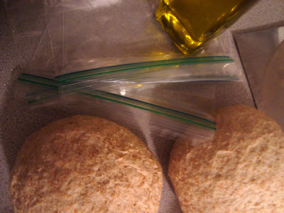 Going along with the Italian theme, I made a double batch of pizza dough (makes 4 crusts), which is a must-have staple in my freezer. I divided the dough in 4 parts, and froze it in little oil coated ziplock bags. They defrost in about a day in the fridge and cook up in about 15 min, so with a little pre-planning I can have a speedy, homemade, and pretty tasty pizza.